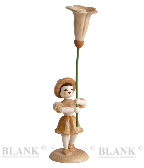 Die Blumenkinder dieser Serie - stehend - sind mit der jeweiligen Blume etwa 14 bis 15 cm hoch.